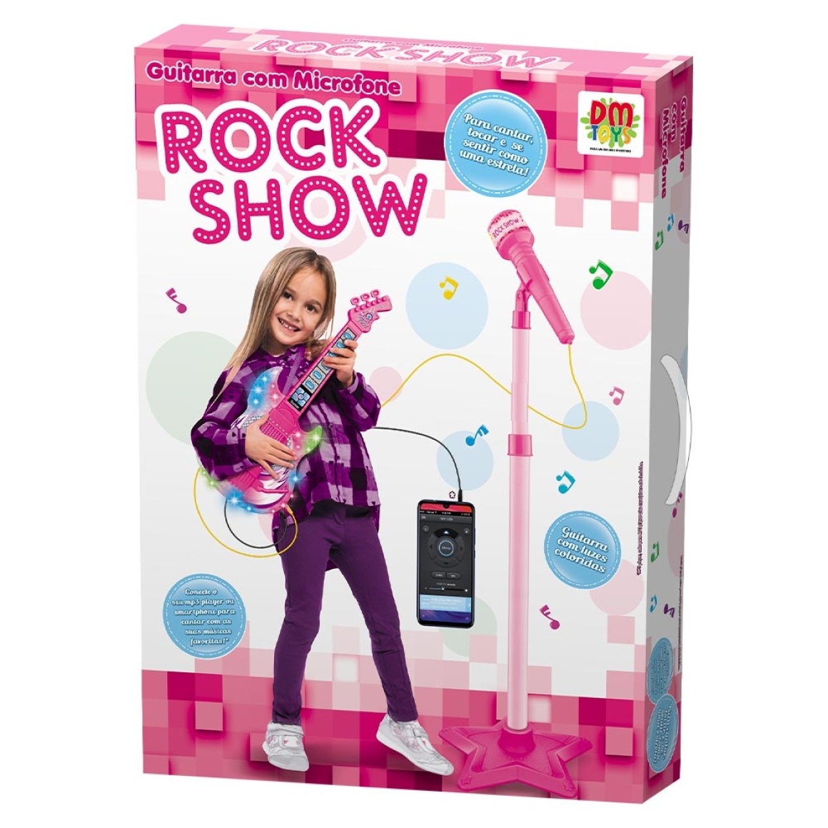 Guitarra com Microfone Musical Infantil Rock Show com Pedestal  e Cabo P2 e Luz a Pilha