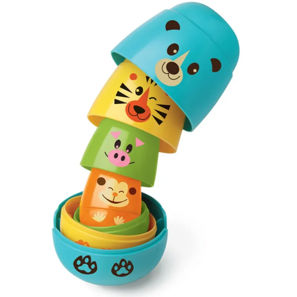 A Matrioska da Elka é pura diversão, a cada abertura a criança descobre um animal, são empilháveis, possuem a base arredondada como um João-bobo, coloridas e fáceis de encaixar.