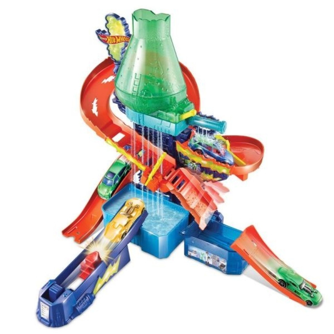 Hot Wheels Estação Científica. Muita diversão onde muitas aventuras e experiências com cores podem sair do controle. Uma aventura repleta de emoção e adrenalina. São três diferentes áreas de mudança de cor. Divirta-se com as misturas de cores mais piradas e liberte o carro de volta a pista.