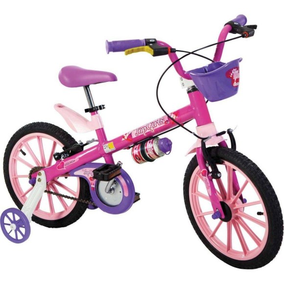 bike aro 16 feminina quadro em aço carbono, possui freios V Brake dianteiro e traseiro, maçaneta em amarelo fica em destaque para a criança nao ter duvidas na hora de acionar o freio traseiro, garantindo assim a sua segurança. ela ainda possui pen scm camara, rodas laterais com regulagem de altura, limitador de giro do guidao, cestinha e garrafinha