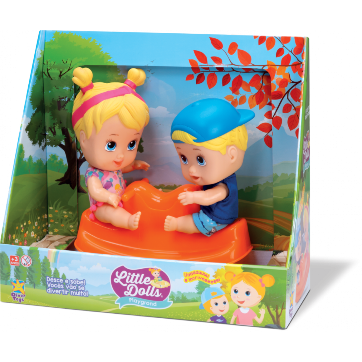 O Playground é a área preferida das crianças e elas vão se divertir muito com a Boneca Little Dolls Playground Gangorra. Vem 2 bonequinhos, uma menininha e um menininho feitos todo em vinil. A gangorra se movimenta de verdade, para cima e para baixo para a brincadeira ficar ainda mais real e divertida!