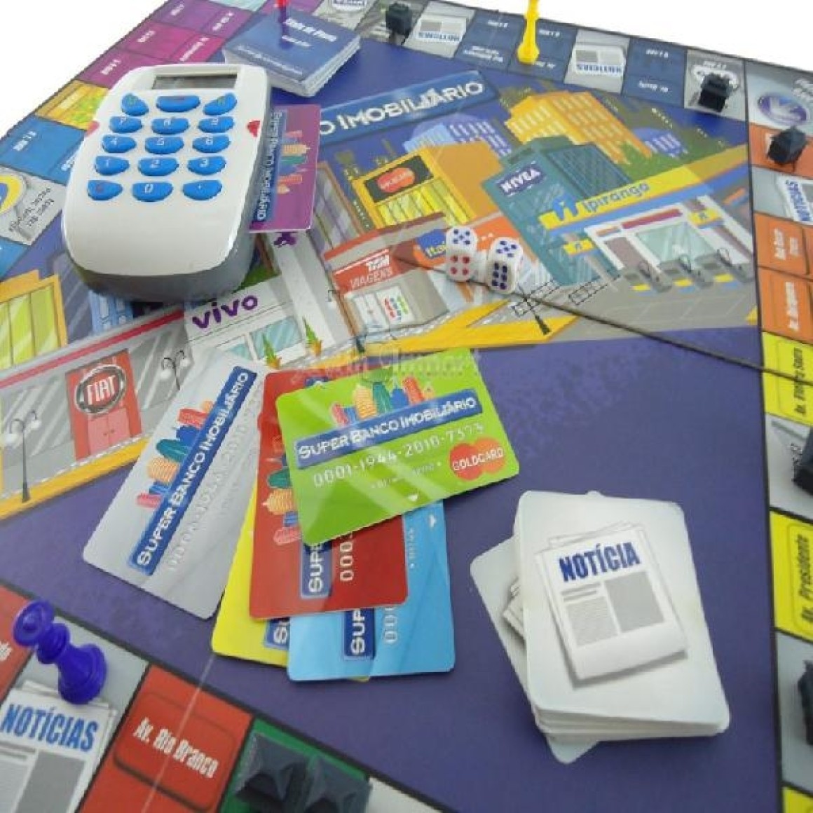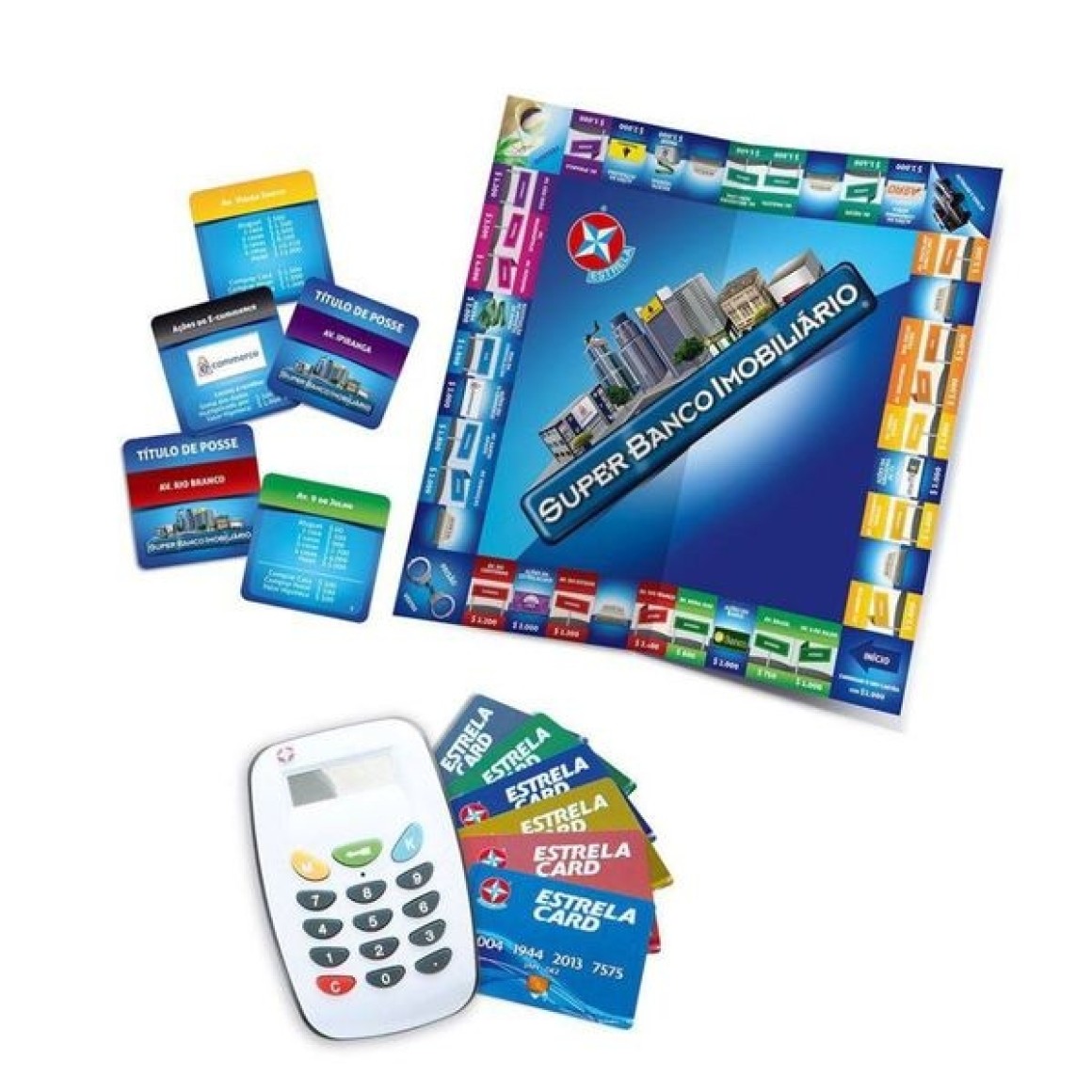 O Super Banco Imobiliário é o mais moderno jogo de compra e venda de propriedades! Todas as transações agora serão feitas pelo cartão de crédito e as ações das companhias do jogo são reais! O mercado está se modernizando e você não pode ficar para trás! Com a máquina de cartão de crédito, as companhias reais no tabuleiro e as propriedades atualizadas você vai jogar como se estivesse negociando de verdade! Este novo jogo traz todo o dinamismo do mundo dos negócios para a sua casa, você pode unir família e os amigos para jogar. Esta é sua oportunidade de tornar-se um grande milionário!