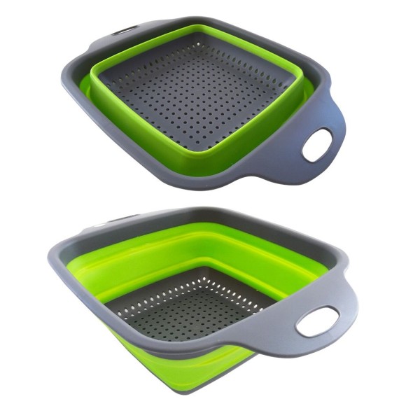 O escorredor retrátil em silicone funciona de maneira bem simples: basta segurá-lo pelas alças sobre a pia e colocar sobre ele os alimentos ou utensílios que se deseja lavar ou secar.