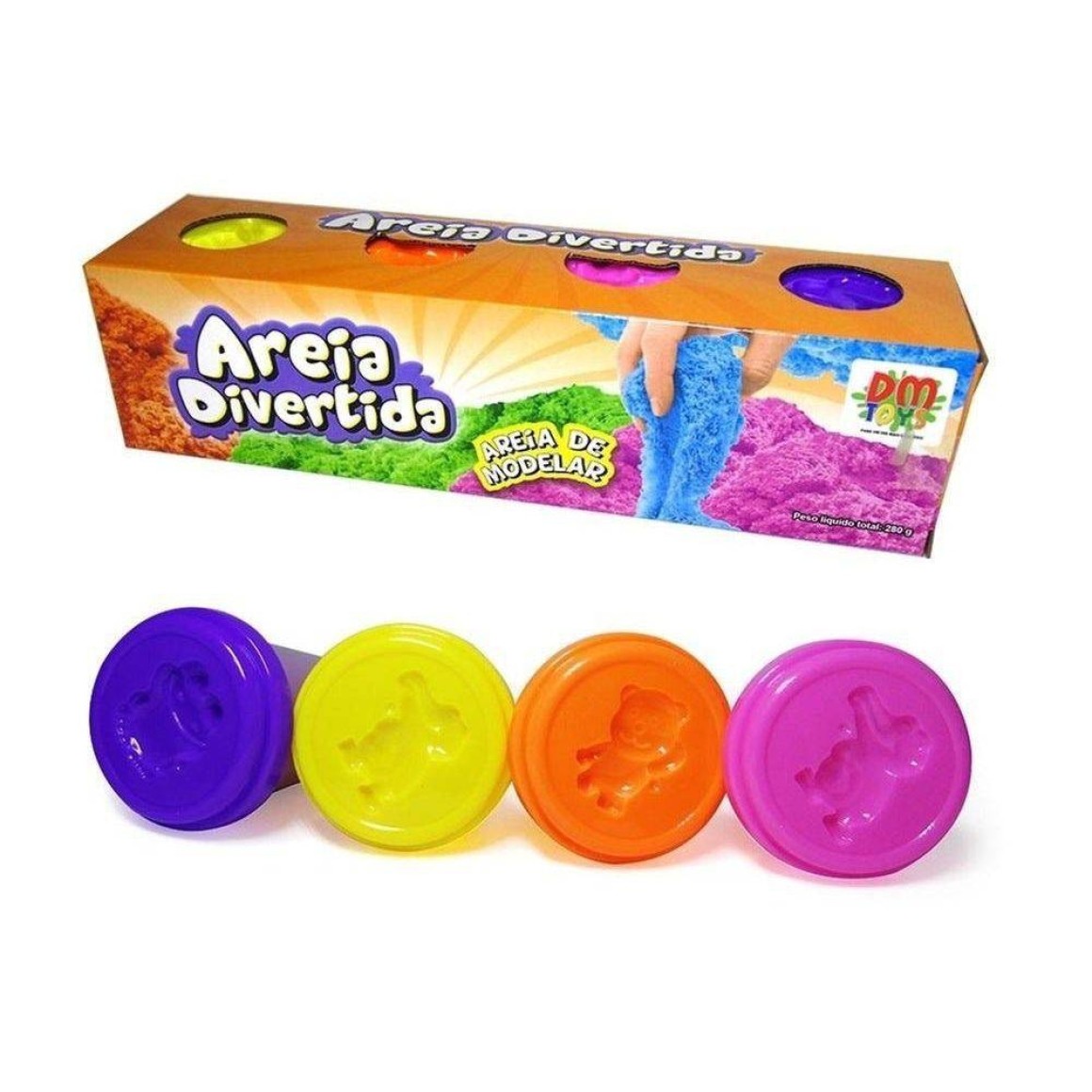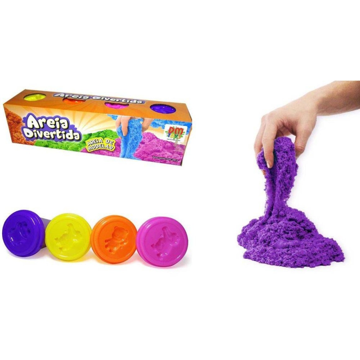 Areia de Moddelar Divertida com 4 Potes