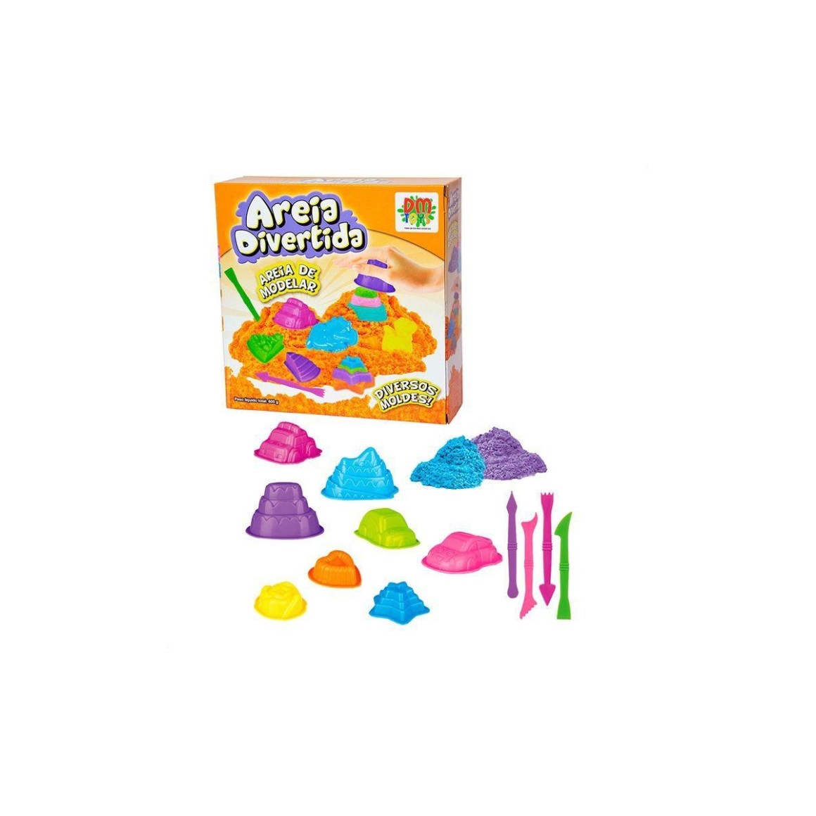 02 sacos de areia de modelar com 300g cada, com acessórios para fazer brincadeiras incríveis. Idade recomendada: Acima de 3 (três) anos Conteúdo da embalagem: 10 (dez) moldes de plástico 04 (quatro) ferramentas de plástico 02 (dois) sacos