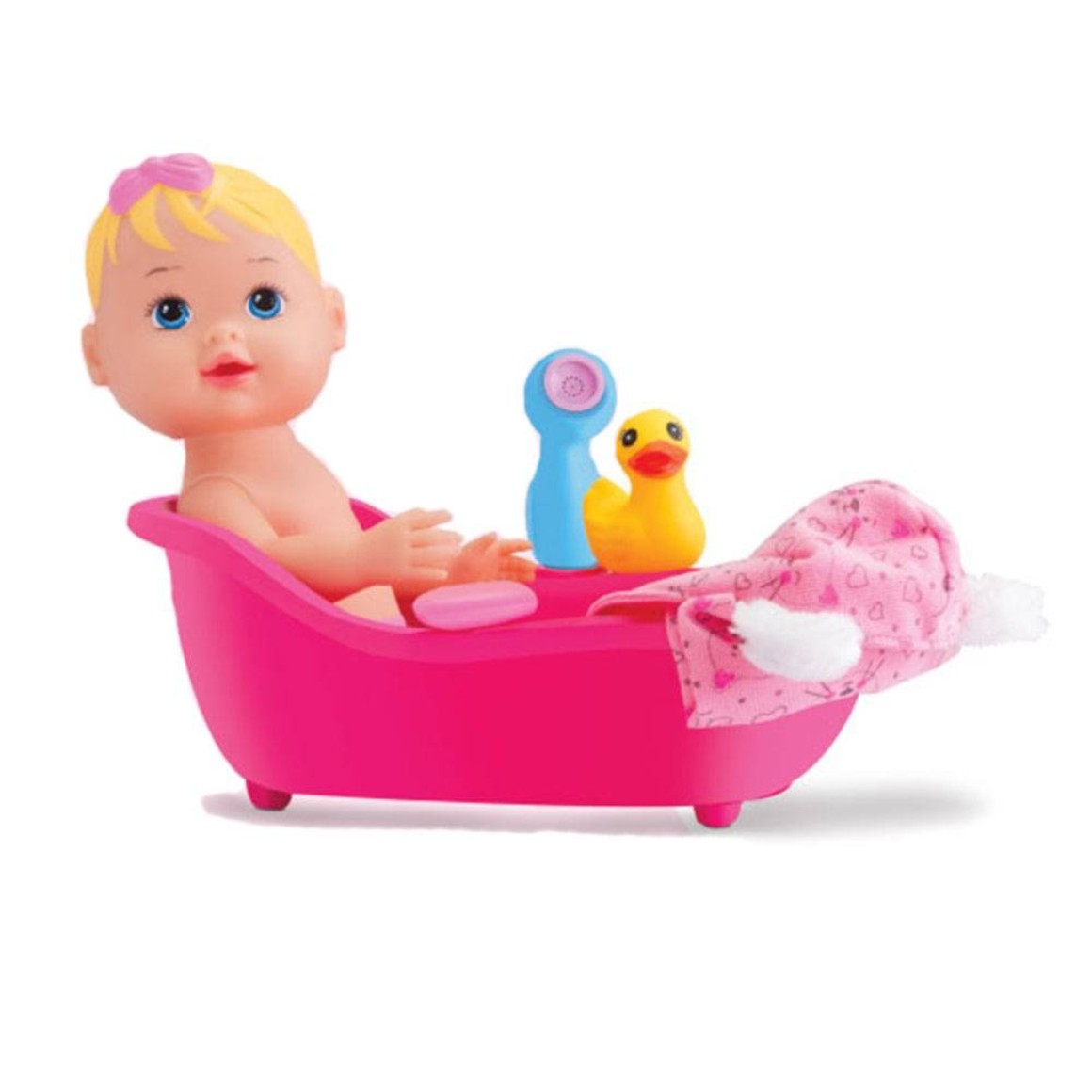 boneca Toda em Vinil Acompanha Acessórios Fofos: Patinho, Sabonetinho (lúdico) e Toalhinha com Capuz.