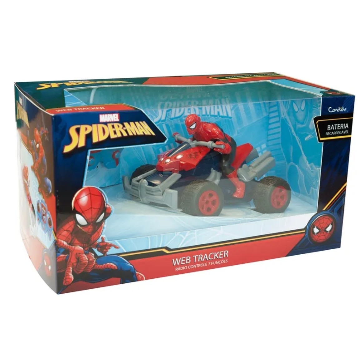 Itens inclusos: 01 Carrinho Web Tracker Homem Aranha com Controle 5850 Candide