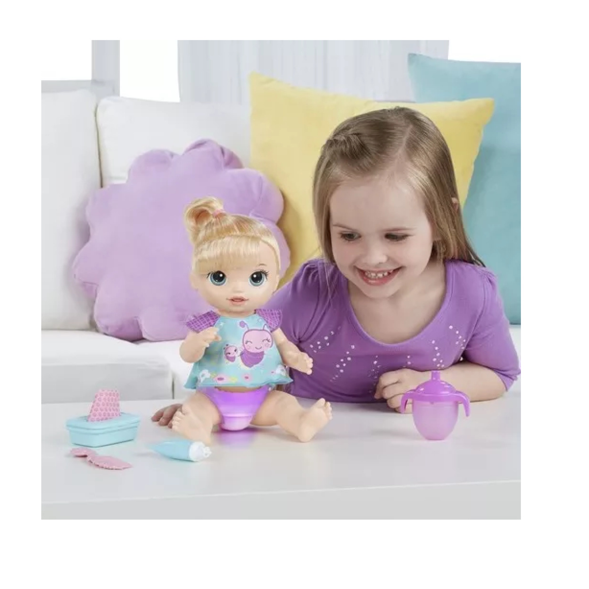Momentos como mamãe podem ser mágicos, especialmente com a Baby Alive Fraldinha Mágica Loira! Quando é necessário, luzinhas acendem na fralda para trocá-la. Quando as meninas fingem dar comidinha ou bebidinha, ela faz sons reais! Além disso, ela agradece a mamãe quando troca a sua fralda e tem mais de 20 frases e sons! As meninas podem se sentir como mamães reais cuidando do seu bebê.