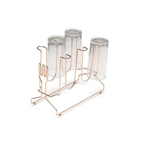 Suporte Secador Copos Rose Gold Aço Galvanizado 6 Lugares Arthi