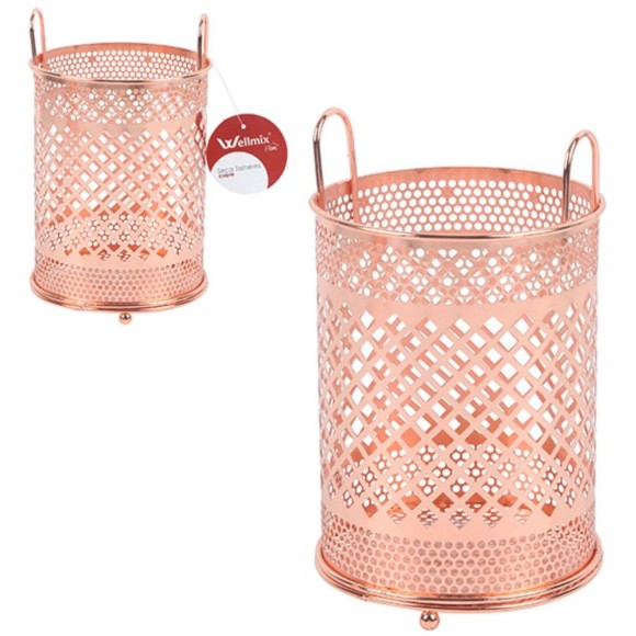 Porta Talher / Escorredor De Talher Aramado Metalizado Cobre / Rose 18x11cm