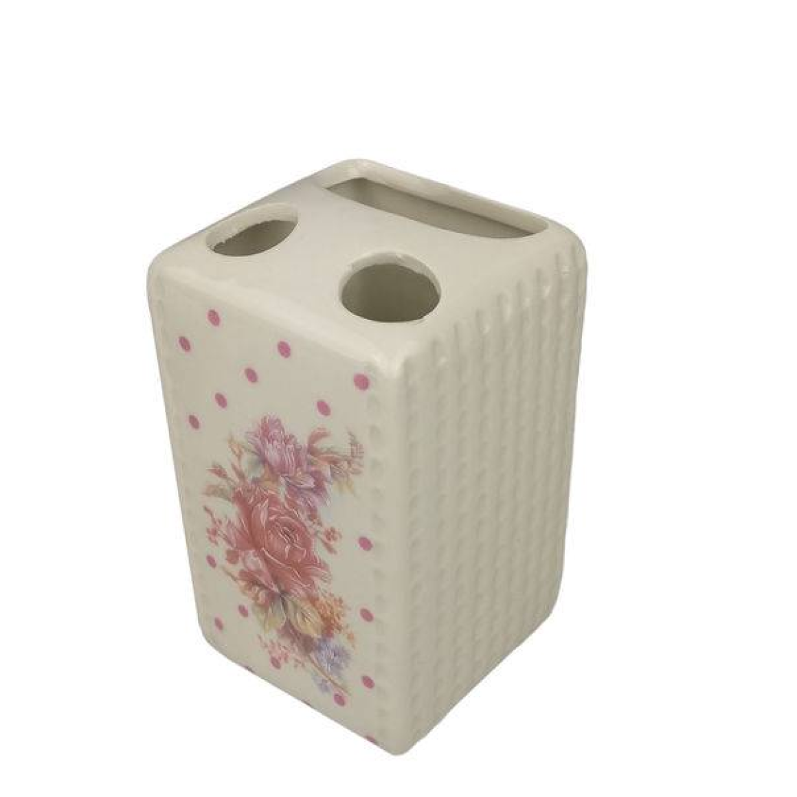Kit Banheiro Porcelana Flower Porta Sabonete Liquido Porta Escovas E Saboneteira - Wincy