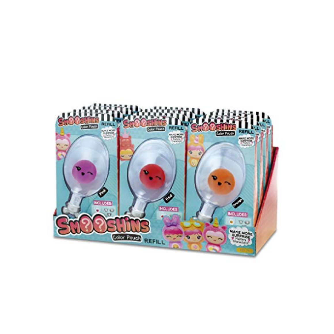 A linha Smooshins traz lindos personagens fofinhos que são produzidos pelas pequenas mãos das meninas, tornando cada Smooshin único e original. O kit refil tem 12 sortimentos diferentes nas cores rosa, roxo, vermelho, azul, laranja e amarelo (Cores sortidas) para criançada criar seu próprio Smooshin na cor que quiser!