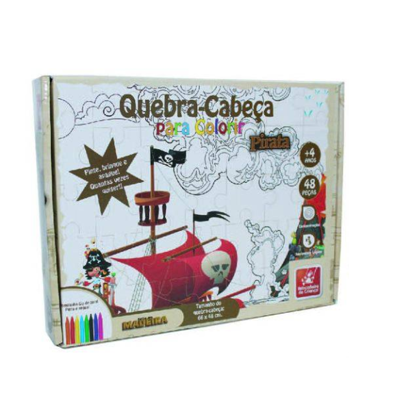 Quebra Cabeça Para Colorir Pirata - Educativo em Madeira