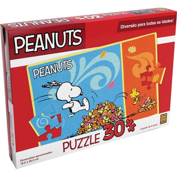 A montagem de um quebra-cabeça por passatempo ou por hobby traz momentos de alegria a cada peça montada. Ele é ideal para desenvolver a percepção e coordenação motora de forma alegre e superdivertida. O Quebra-Cabeça Snoopy da Grow vai trazer muita diversão para a brincadeira das crianças. São 30 peças, para você encaixar uma a uma até formar uma linda imagem.