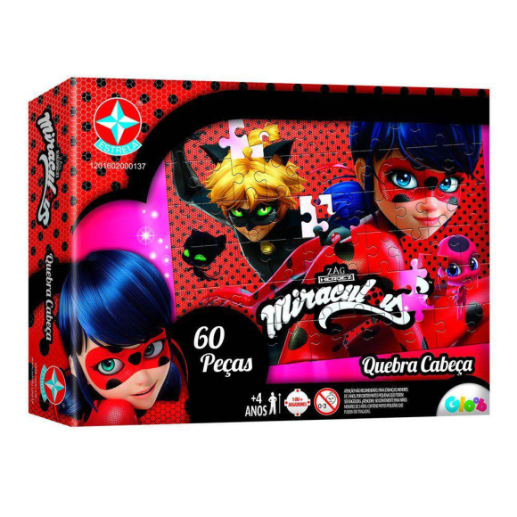 O Quebra Cabeça Miraculous Ladybug 60 Peças Estrela vai fazer a alegria dos pequenos fãs do desenho. Quebra-Cabeça são ótimos para divertir e aprender ao mesmo tempo. Eles estimulam raciocínio, a memória visual e a concentração dos pequenos. Esse modelo é indicado para crianças maiores de 4 anos e possui 60 peças.