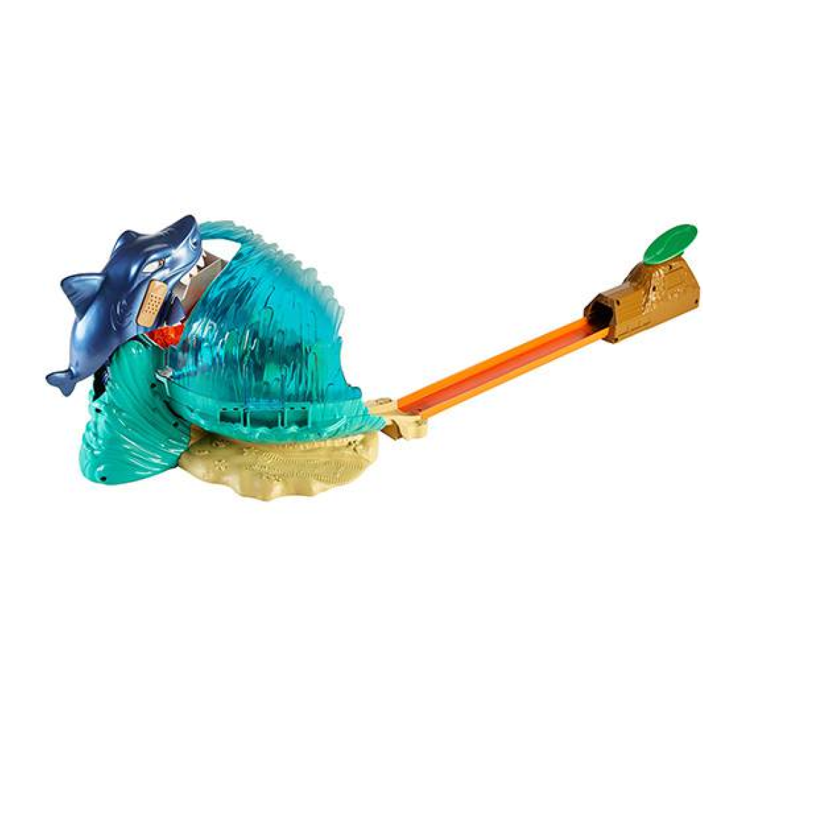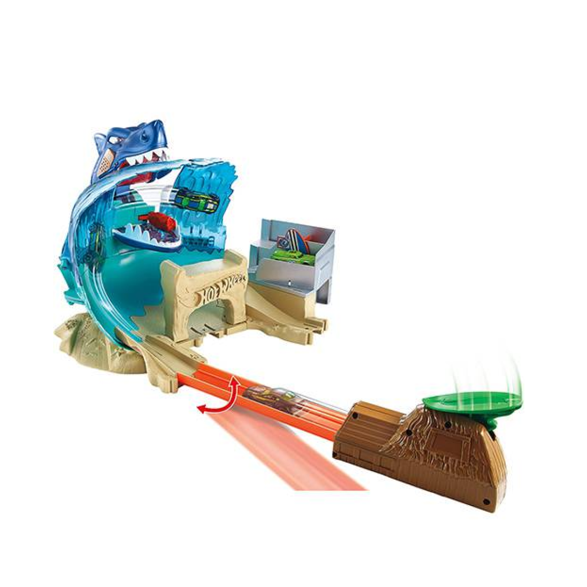 Um enorme conjunto com o tema de praia, com o grande tubarão que mastiga carros. A imaginação dos meninos não encontra limites com este desafio para salvar a cidade. Derrote o tubarão lançando um carro diretamente em suas mandíbulas. Fácil de arrumar, sem peças soltas, e com uma performance incrível! Construa uma cidade conectando outros conjuntos de Hot Wheels City. Os novos conjuntos também são compatíveis com outros conjuntos de pistas, como as de cor laranja.