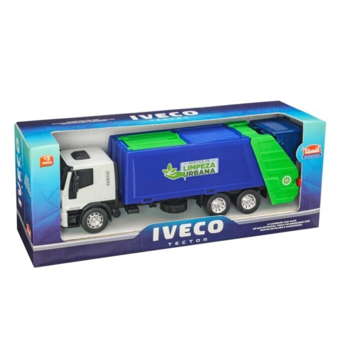 O Caminhão Iveco Tector Coletor é uma excelente opção para a criança brincar e se divertir, Acompanha Container de Lixo.