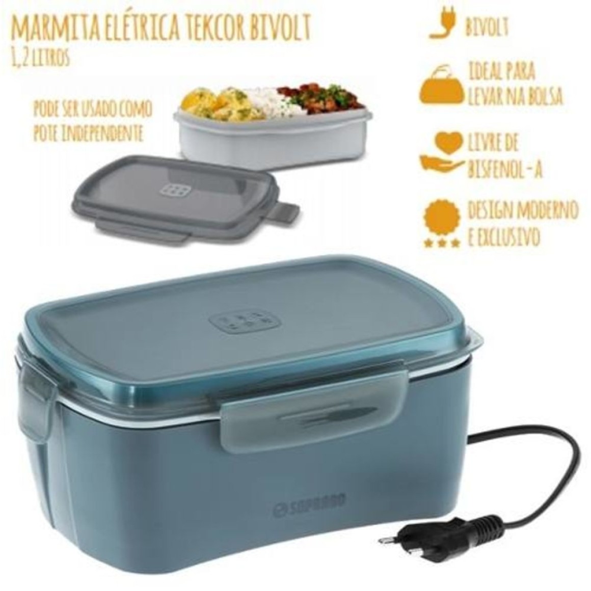 - Tampa com vedação em silicone, não vaza