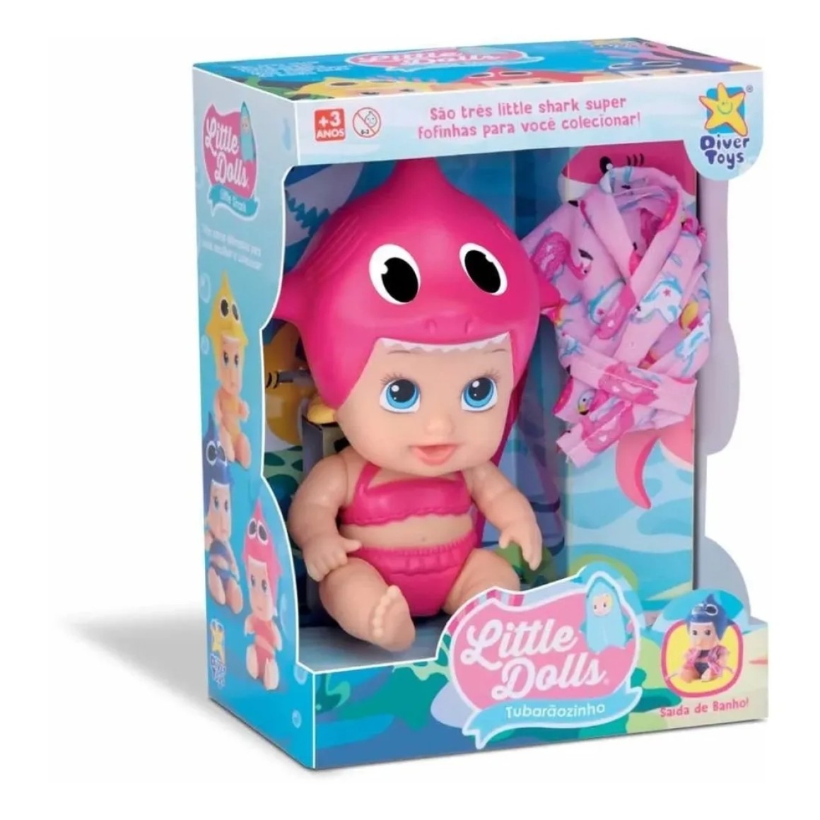 A Little Dolls Tubarãozinho está disponível em 3 cores: ROSA, AMARELA E AZUL