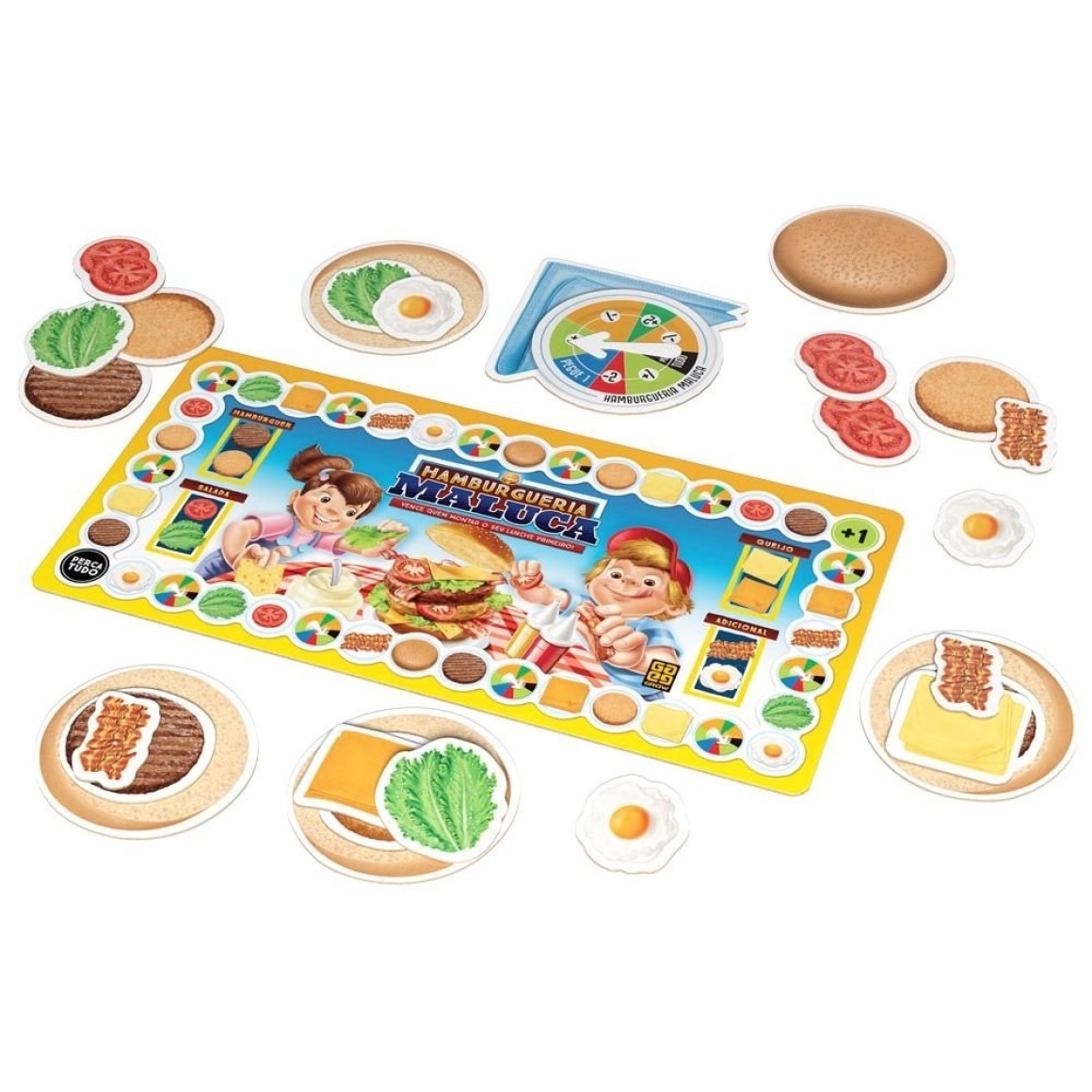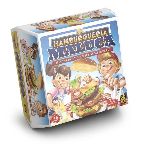 A criançada vai se divertir de montão com o jogo de tabuleiro Hamburgueria Maluca da Grow. Quem será o mais rápido? Apenas quem conseguir todos os ingredientes e fechar seu lanche primeiro ganhará. Monte seu lanche respeitando as quatro categorias de ingredientes e conte com a sorte para completar seu hambúrguer antes dos demais jogadores. Muita coisa pode acontecer e ninguém deixará você completar essa missão tranquilamente.