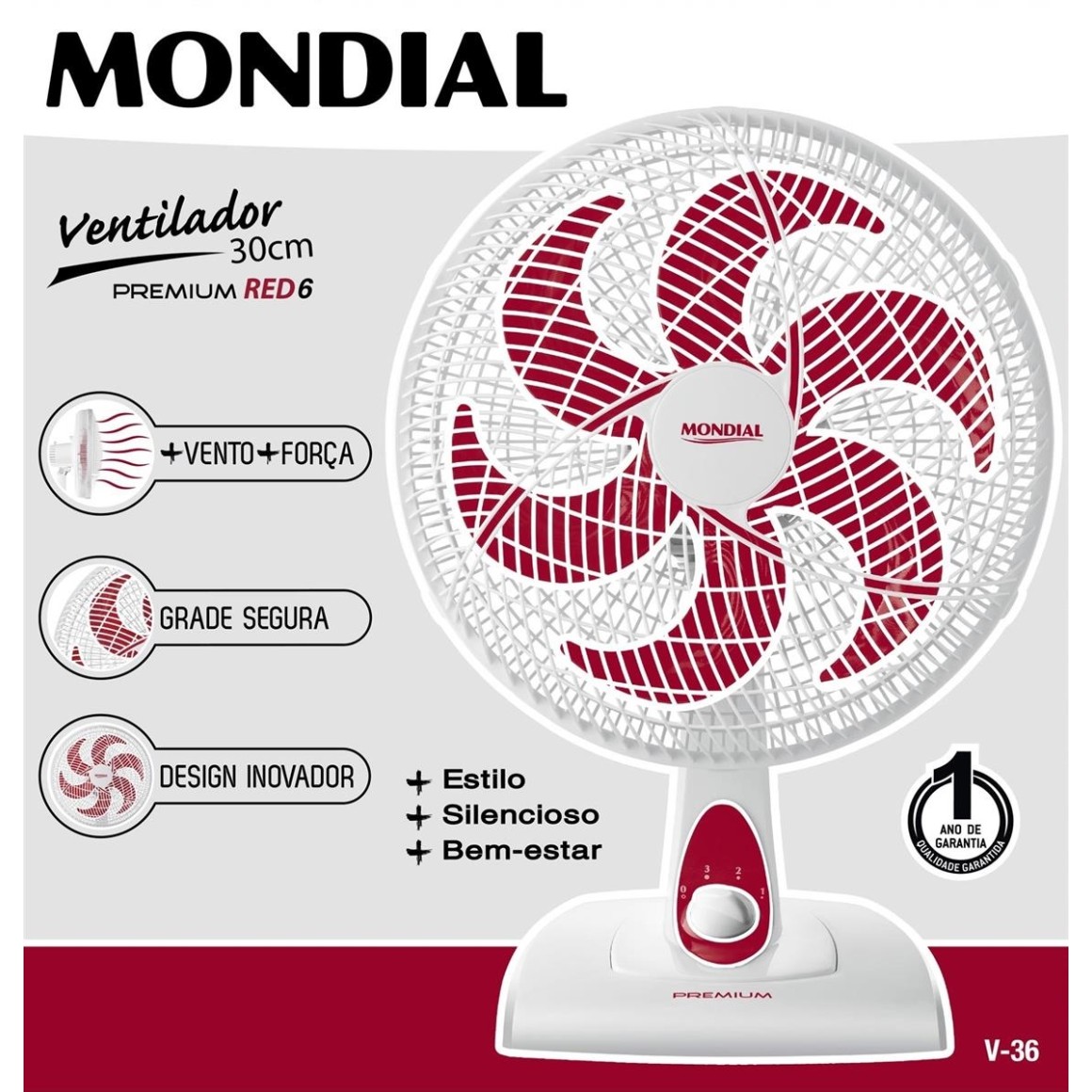 Ventilador de Mesa Mondial V-36-6P Red Premium 6 Pás 3 Velociades - 30cm